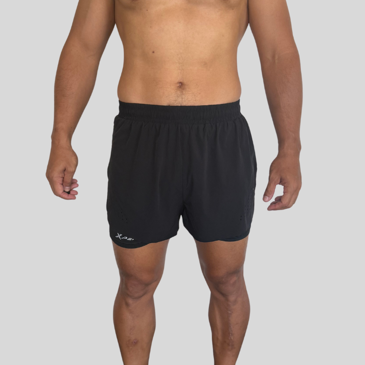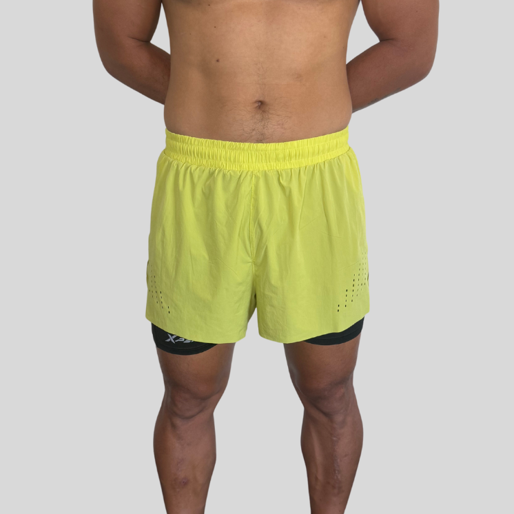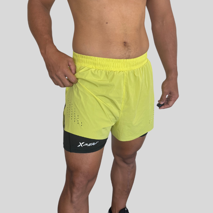Conçu pour les athlètes en quête de liberté et de performance, ce short 2-en-1 Free Move associe un short léger à une doublure compressive intégrée. Sa coupe ergonomique avec fentes latérales garantit une mobilité optimale, tandis que la matière respirante et les perforations assurent une ventilation efficace. Parfait pour les entraînements intensifs (CrossFit, running, musculation), il est équipé d’une ceinture élastique confortable et d'une poche intégrée au dos. Disponible en noir ou jaune fluo.